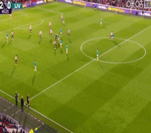 第45+5分钟,凯尔凯兹中路抢点破门,利物浦1-2扳回一球