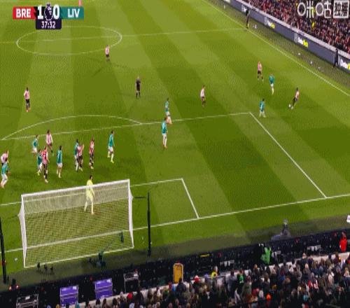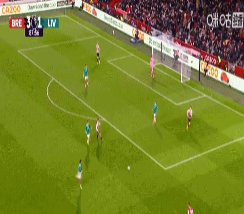 第5分钟,手榴弹战术,瓦塔拉半凌空倒钩破门,布伦特福德1-0利物浦