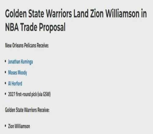 鹈鹕得到库明加+穆迪+霍福德+2027年首轮签。