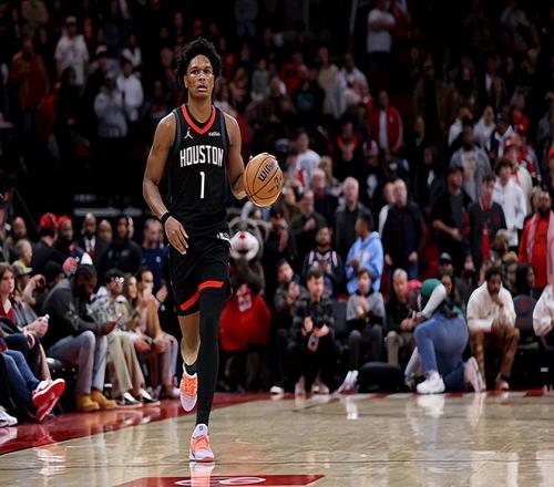 本场比赛中,火箭的先发控卫阿门-汤普森(Amen Thompson)的表现还是相当不错的。阿门全场出场40分39秒,投篮15中7,罚球9中7,得到了21分8篮板9助攻2抢断的准三双数据,其中还包括了5个前场篮板,正负值为+15。阿门在本场比赛中在进攻端保持了不错的进攻效率,他在对手内线还是能够利用自己的运动能力和冲击力制造一定的威胁的,这一点也是值得肯定的。最关键的是,阿门在传球和组织方面起到了相当不错的效果,确实是起到了后场核心的作用,这一点更是超出了预期。除此之外,阿门在防守端的表现也是值得肯定的,而且他在前后场篮板争抢方面的作用也非常明显。阿门在本场比赛中算是很好地扮演了自己的角色,并且为球队的胜利做出了不小的贡献。