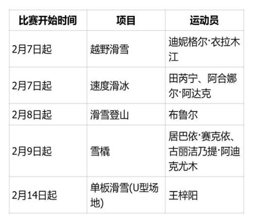 新疆健儿参赛日程(北京时间)