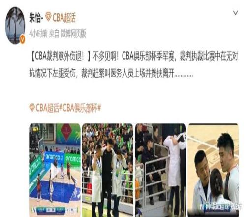 然而,事实上,这一次CBA季中杯,虽然对抗非常激烈,像孙铭徽等人都意外受伤。可真正令人意想不到的是,就连裁判也意外受伤了。在广厦与山东这一场比赛的第二节,裁判在无对抗的情况下,左腿意外受伤,这也导致比赛被迫中断。随后,在医护人员的搀扶下,裁判直接离开了现场,这也让现场和电视机前的观众看得目瞪口呆,纵观过去几十年里,这裁判意外受伤还真是头一遭。