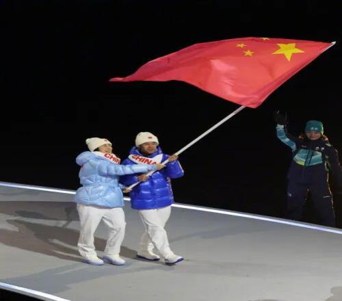 而运动员专属的红白色领奖服仿佛星火燎原,既是科技工艺的体现,也暗喻着中国冰雪健儿的闪耀米兰的冬奥征程。